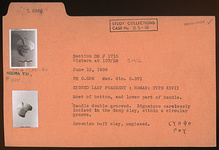 | Description: | Most of bottom, and lower part of handle. Handle double grooved. Signature carelessly incised in the damp clay, within a circular groove. Unglazed. Brownish-buff clay. Type XXVII of Corinth collection. <graphic> | |