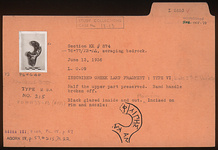 | Description: | Half the upper part preserved. Band handle broken off. Black glazed inside and out. Plain rim, incised on rim nozzle. Type VI (late 5th. century group variety) of Corinth collection, type 23A of Agora collection. <graphic> | |