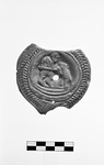 | Description: | Broken away below rim. On disc, man right, spreading a bear. Herringbone rim. Thin red glaze. Type XXVIII of Corinth collection. | |