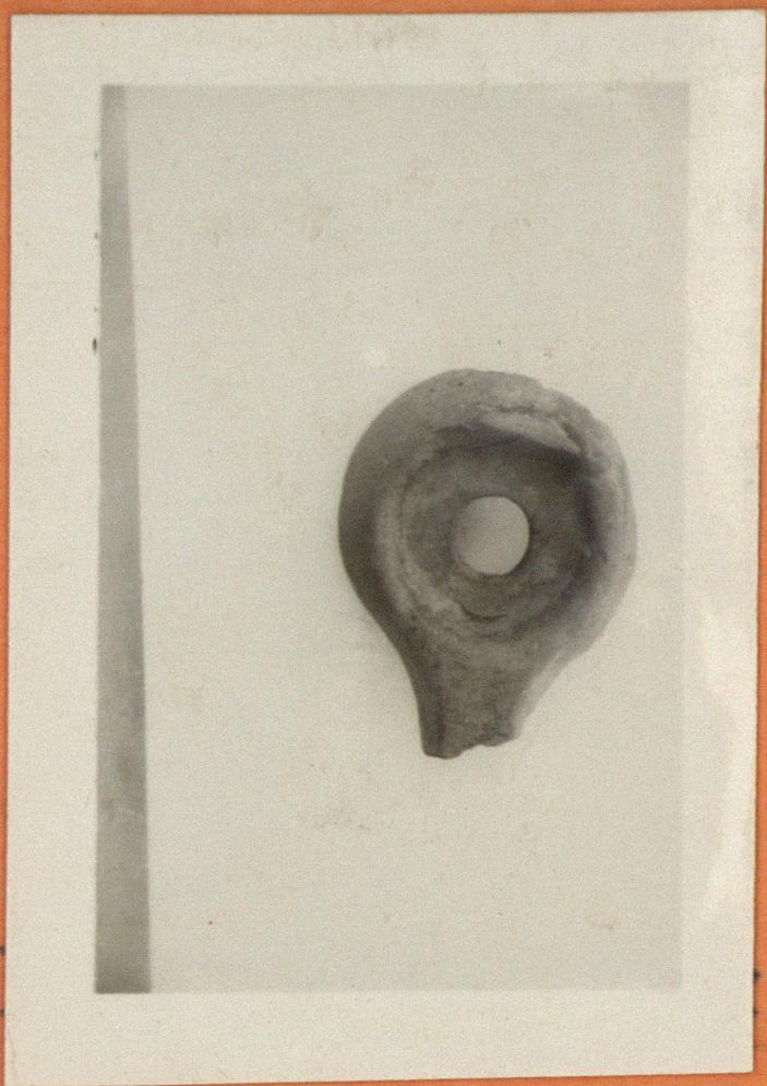 | Description: | Lacking point of nozzle, lower part of infudibulum, and handle preserved. The top of the rim is depressed so that a narrow flat rim is surrounded by a high ridge. Walls slopes gently in above. Mold made. Nozzle, flat on top. Broad vertical strap handle. Covered outside and on front part of inside with metallic black glaze, much flaked. Buff clay. Type XII of Corinth collection, type 43D of Agora collection. | |