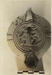| Description: | Intact save minor fractures. On discus, gladiators. Rim, plain, with panels. Handle pierced, three grooves above, two below. On reverse, single circular groove. Unglazed. Pinkish clay. Type XXVII (late type) of Corinth collection. | |