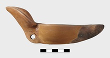 Heart-shaped discus and leaf handle-guard with a palmette below it.