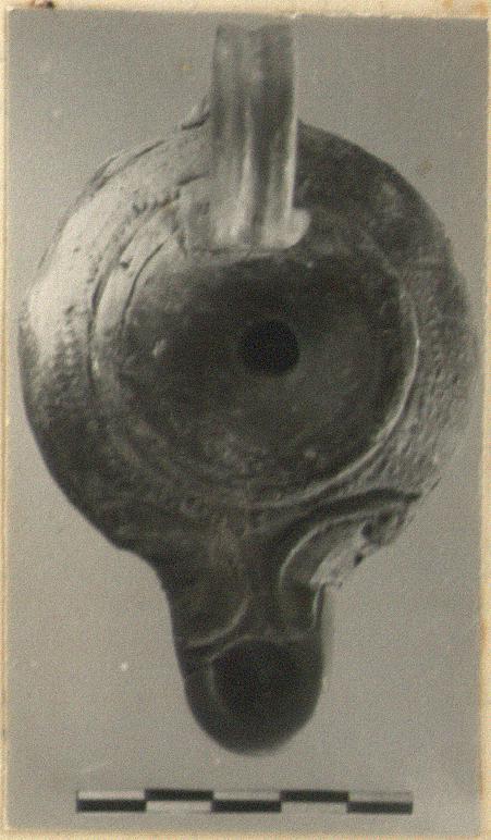 | Description: | Handle and end of nozzle missing. The dots small and elongated; underneath, "alpha". Glaze wash red to black. Type XX of Corinth collection. | |