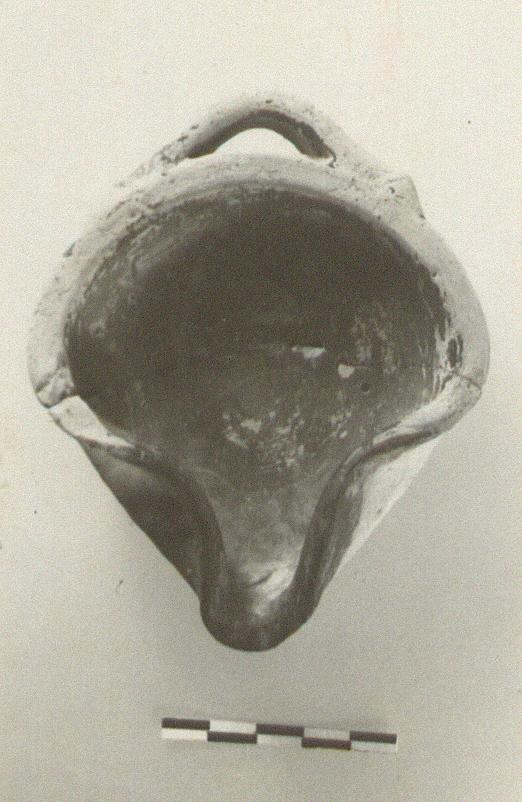 | Description: | Front part reserved. Broad flat bottom; sides pinched in to form an unbridged nozzle. Glaze inside, dull reddish-brown. Pinkish-buff clay. ADDENDA L 3093 (ΠΘ 2672): later found to join; complete save for small chip from bottom. Type 4 of Agora collection. | |