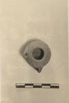 Miniature lamp; raised base; pierced lug at side; the top plain, in a continuous curve with the sides, no groove.