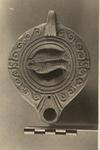 | Description: | Handle semi-pierced. On discus, two fishes hanging by a string. On rim, double spirals; underneath, a leaf incised, within two grooves. Unglazed. Red clay. Type XXVIII of Corinth collection. | |