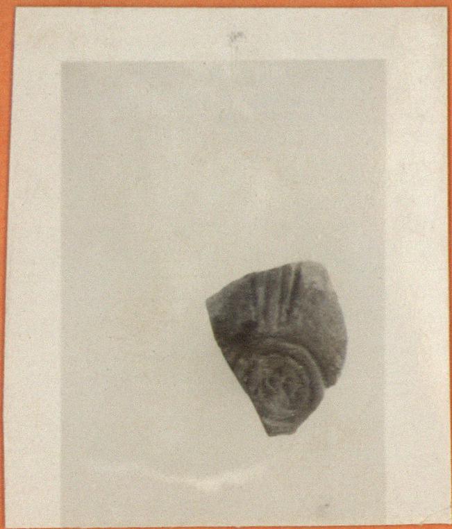 | Description: | Fragment of base. On reverse, within two concentric grooves inscribed: "K Y". Thin purplish glaze. Dull red clay. Type XXVIII of Corinth collection. | |