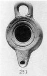 | Description: | Most of nozzle and horizontal loop handle broken off. Grooves on the top; edge of rim at filling hole depressed. Low ring foot. Poor black glaze almost entirely peeled off. Type V (third variety) of Corinth collection, type 24A' of Agora collection. | |