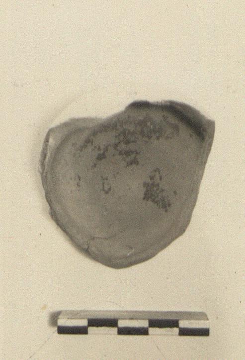 | Description: | Base and about one-third of body preserved. Rim and nozzle missing. Thick bottom on a low base, rising to a cone inside. Rounded walls. Smootly finished outside; glaze red, badly worn, inside only. Type VIIB of Corinth collection, type 25B' of Agora collection. ADDENDA Fragments added November 1948, from tin 444, making the lamp complete except for part of one side of wall and part of edge of filling hole. | |