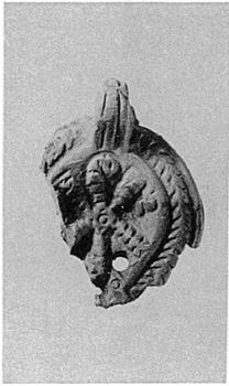 | Description: | Part of top preserved. On rim, herringbone pattern. On discus, Christian monogram; the bars are hatched; in the right quarter an "omega"; the left quarter (containing the "alpha"?) broken away; at the bottom, on either side of the stem of the "rho", a filling hole. Handle solid; double grooved. Thin purple glaze. Mottled gray and black clay. Type XXVIII of Corinth collection. Cf. Corinth IV, ii, no. 6, fig. 52. | |