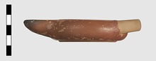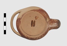 | Description: | Handle and part of side missing. Extremely low base; torus side wall. Horizontal band handle. Thin reddish-brown glaze outside; dark brown inside. Type IV of Corinth collection, type 21C of Agora collection. | |