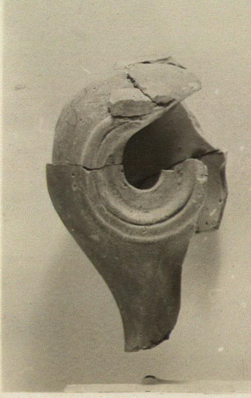 | Description: | Handle, end of nozzle, most of side missing. Low base, high curved body, depression around filling hole, separated from shoulder by grooved ridge. Attachments for vertical strap handle. Red glaze. Red-buff clay. Type 44A of Agora collection. | |