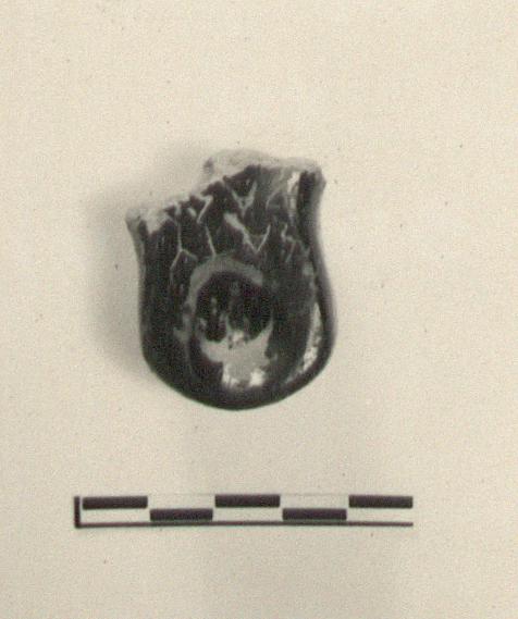 | Description: | Nozzle only preserved. Inscribed on the flat top of the nozzle. Good black glaze, chipped. Type VI of Corinth collection, type 23A of Agora collection. <graphic> | |