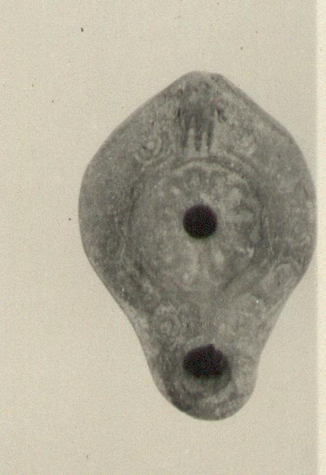 | Description: | On rim, concentric circles. On discus, rosette round central filling hole. Nozzle plain, rounded with channel to filling hole. Handle solid, narrow, double grooved. On bottom, ring of small circles round a circular groove which encloses a palm branch. Type XXVIII of Corinth collection. | |