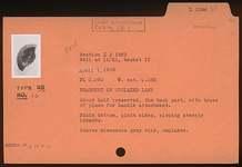 | Description: | About half preserved, the back part, with trace of place for handle attachment. Plain bottom, plain sides, sloping steeply inwards. Unglazed. Coarse micaceous gray clay. Type 2B of Agora collection. | |