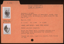 | Description: | Three-quarters complete. Mold for lower half; circular reverse with five small dots surrounded by concentric groove and ridge. Light slip inside, with traces of red. Coarse red clay. Type XXVIII (late type) of Corinth collection. | |