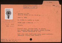 | Description: | Intact. Concave base, pierced knob, no handle. Low rounded body with groove around filling hole. Nozzle flattened on top. Imitation blister ware fabric (?). Buff clay with light gray wash; pared surfaces. Type IX of Corinth collection, type 28B of Agora collection. | |