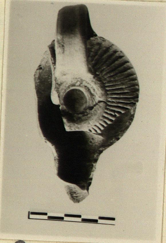 | Description: | Upper part of nozzle and part of ribbed upper body missing. Small discus; ribs on broad top. Raised letters on bottom. Thin brownish glaze. Type XVIII of Corinth collection, type 52E of Agora collection. <graphic> | |