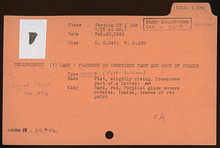 | Description: | Fragment of inscribed base and root of nozzle. Flat base, slightly rising. Preserves part of a letter. Purplish glaze covers outside. Inside, traces of red paint. Hard red clay. Type XVIII (post Sullan) of Corinth collection, Signed Bases type of Agora collection. <graphic> | |