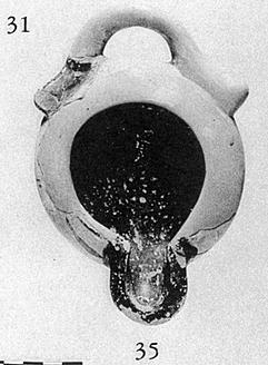 | Description: | Handle and most of one wall missing. Concave bottom, broad flat floor, walls sharply rounded to plain rim. Horizontal spurred handle. Large nozzle, unbridged. Interior, nozzle, handle and edge of rim glazed. Pinkish-buff clay, heavy fabric. Type 35 (sixth century variant) of Agora collection. ADDENDA Restored in plaster since photographing. | |