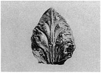 | Description: | Moulded handle-ornament in shape of a large and acanthus-like leaf. The start of a pierced handle behind. Black glaze. Gray clay. Type XXI of Corinth collection. | |