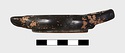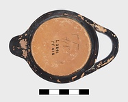 Good black glaze, chipped in spots, inside and out; bottom unglazed.