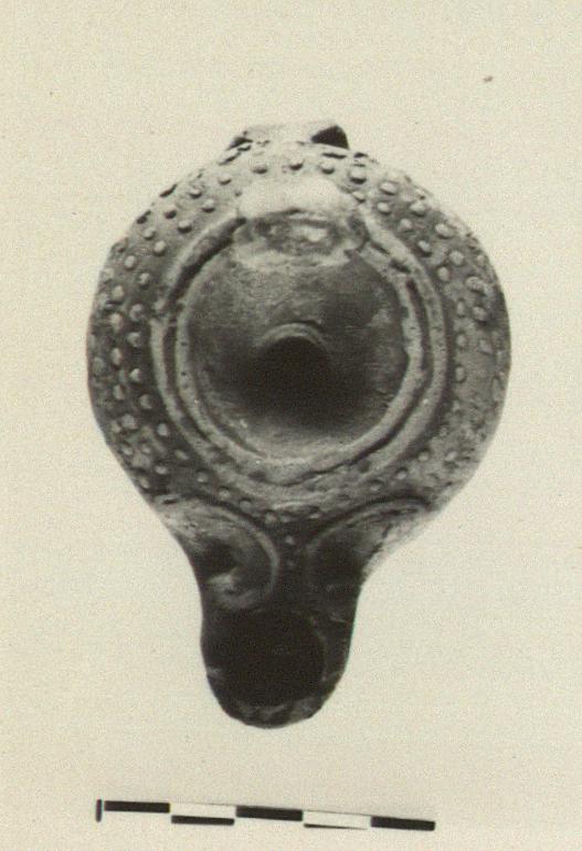 | Description: | The handle missing, and a chip from wall; the halves irregularly put together. Typical "alpha" and globules, rather small; a row of globules also, lengthwise on the underside of the nozzle. Reddish glaze, worn. Orange-brown clay. Type XX of Corinth collection. | |
