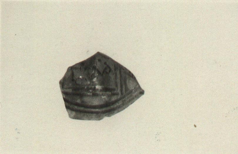 | Description: | Fragment of bottom preserved. On bottom, double almond-shaped groove, enclosing a double rectangular groove, within which is the lower part of a signature. Grooves and letters rather deeply and carefully made. Purplish-red wash. Pinkish clay. Type XXVIII of Corinth collection. <graphic> | |