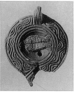 | Description: | Much of nozzle and part of side missing. On discus, two fishes, left; on rim, wavy lines; handle solid, triple grooved in front, double behind. Reverse, palm branch inside two grooves. Warped and blackened by fire. Seems to have had red wash. Type XXVIII of Corinth collection. | |