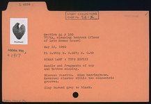 | Description: | Handle and fragments of top and bottom missing. Discus with rosette. Rim with herringbone. Reverse with cluster within two concentric grooves. Burned gray to black clay. Type XXVIII of Corinth collection. | |