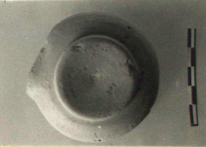 | Description: | Lower part; outside unglazed, black glaze inside. Household accounts (?) scratched in very small letters on bottom. Type VIIB of Corinth collection, type 25A' of Agora collection. <graphic> | |