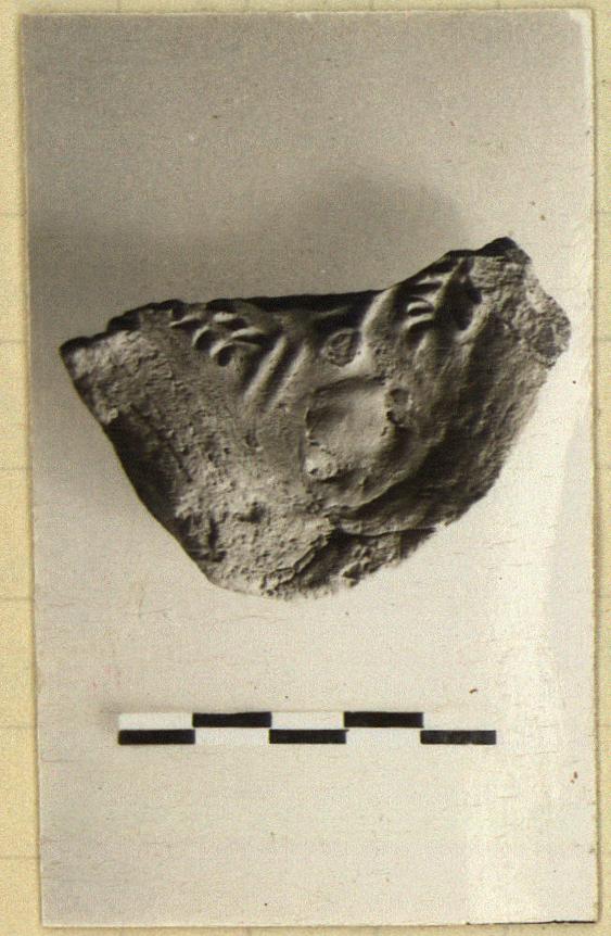 | Description: | Fragment from mold for upper half of a lamp, preserving the end for the nozzle and part of the herringbone pattern on the rim. Gritty red-buff clay. Type XXVIII of Corinth collection, type 28 of Agora collection. | |