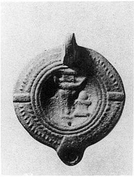 | Description: | Intact. On the discus, a stylized boukranion beside a small altar. Traces of a signature, now illegible, on the bottom. On the rim panels, and a double circle of dots. Handle grooved and pierced. Unglazed. Thin fabric; buff clay. Type XXVII of Corinth collection. | |