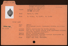Description:   On rim, herringbone panel, impressed circles on either side.