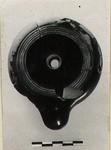 | Description: | Small fragments missing. Collar through center; no handle. Low base; five neat grooves and ridges around edge of rim. The base and the grooved rim reddened with miltos; otherwise good black glaze, worn, over all. Type IV (early 5th. C Group) of Corinth collection, type 22C of Agora collection. | |