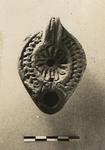 Rim, herringbone; discus, rosette; handle solid, double-grooved.