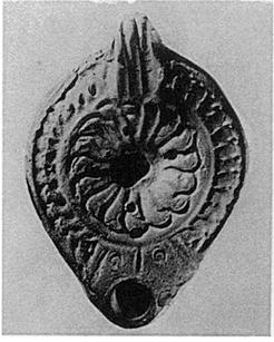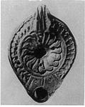 | Description: | Mended from three pieces; complete except for chips. Rosette on rim; herringbone on discus; grooved semi-pierced handle. Almond-shaped reverse, outlined by double groove; within it the signature. No glaze. Brown clay. Type XXVIII of Corinth collection. <graphic> | |