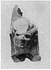 | Description: | Broken off below the figure's chin, and the top of the handle missing. A boy's head, in high relief, set against a plain rectangular backing. Pierced handle above. The figure's eyes pierced. Dull red to brown glaze wash. Light red clay. | |