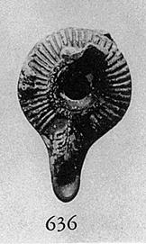 | Description: | Most of band handle, and end of nozzle missing. On the top, ribs, with a narrow band of ovules near the filling hole; lug on one side. On the top of the nozzle, palmette. Beaneath, within a raised ring, in relief, "alpha". Dull black to brown glaze, much worn. Type XVIII of Corinth collection, type 48B of Agora collection. ADDENDA Restored in plaster since photographing. | |