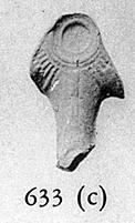 | Description: | Fragment preserves mold for top and nozzle with rays on rim. Two letters scratched on back. Type XVIII of Corinth collection, type 48A of Agora collection. <graphic> | |