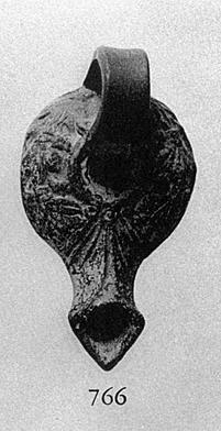 | Description: | Intact. Pointed nozzle; band handle; olive leaf pattern on rim with ridge around filling hole. In relief on base: "ΗΡΑΔΟC". Red glaze, much chipped. Pinkish-buff clay. Type XVIII of Corinth collection, type 54A of Agora collection. | |