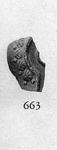 | Description: | Small fragment of top and rim. Palmettes and dots in relief on the rim; the ridge which separates the rim from the plain top follows the top of the nozzle. Dark gray glaze on surface. Light gray clay. Type XIX (post-Sullan) of Corinth collection, type 49A of Agora collection. | |