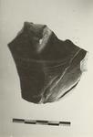 | Description: | Single piece from rim and disk of large lamp. Part of high relief on discus pierced-perhaps a pointed cap (?), boukranion (?). Broad slightly downturned rim, bordered at both edges by a groove. Remains of a filling-hole with two channels at break on pointed object. Brown to tan glaze on outside. Pinkish-buff clay. | |
