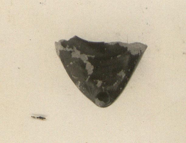 | Description: | A heavy triangular nozzle is preserved, rather shallow, flat on top, and with an extremely small wick hole in the tip. The top of the nozzle merges with a small rim, down sloping round what appears to have been a large filling hole. Glazed inside and out with an extremely good hard very lustrous black glaze. Attic clay. Type VI (late 5th. century variety) of Corinth collection, type 23E of Agora collection. Cf. L 966, also in Lamp Cabinet 16-H, which Howland classifies as "Early 4th. century varierty". | |
