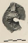 | Description: | Handle of discus and part of rim preserved. Rim, raised concentric circles and lines. Discus, Christian monogram, very rough; raised circles between arms. Handle, solid knob, grooved in front. Unglazed; poorly and irregularly made. Reddish clay. Type XXVIII (very late variety) of Corinth collection; approaching type XXIX. | |