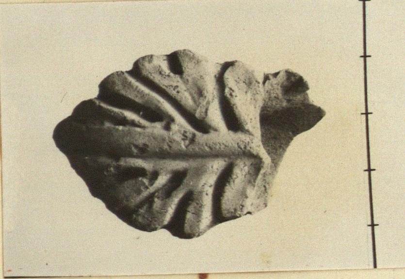 | Description: | Moulded acanthus leaf from the handle of a lamp. Unglazed. Pinkish clay. Type XXI of Corinth collection. | |