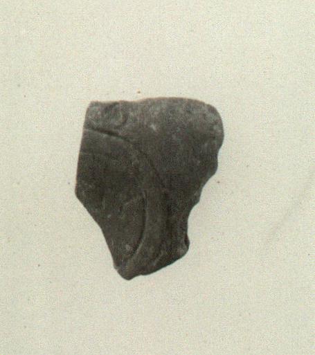 | Description: | Fragment from base of lamp. Handle broken away. At its base, traces of debased heart motif. On bottom, double concentric grooves, enclosing remains of signature. Type XXVIII of Corinth collection. <graphic> | |