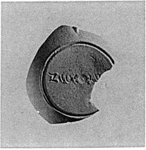 | Description: | Fragment of reverse of lamp. Signature within grooved circle, incised. Light pinkish-buff clay. Type XXVII of Corinth collection. <graphic> | |