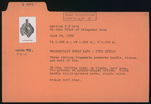| Description: | Three joining fragments preserve handle, discus, and most of rim. Fragmentary. On rim, herringbone; on discus, half moon. Two grooves on almond-shaped bottom. Solid handle triple-grooved above, double below. Orange-buff clay. Type XXVIII of Corinth collection. | |