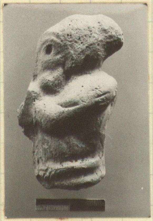 Description:   A fragment, broken all around showing the torso of a man, apparently a foreigner and a gladiator. He is either fighting with or embracing a person in front of him, of which only part of the arms are preserved.